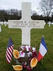 Pvt Joseph W. Holt Sr. was a sales clerk before he enlisted in Allentown, Pennsylvania on 29 December 1943.He was killed by a sniper's bullet while on his first patrol.