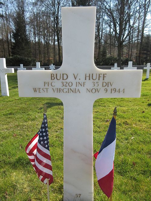 Pfc Bud V. Huff enlisted at Fort Thomas, Kentucky on 20 March 1943.Source of information: Peter Schouteten, www.abmc.gov, www.wwiimemorial.com, www.archives.gov - WWII Enlistment Record, www.ancestry.com - Headstone and Interment Record / U.S.Draft Cards Young Men / Robertson Shaw Family Tree, After Action Report 35th Infantry Division, www.findagrave.com - Coleman