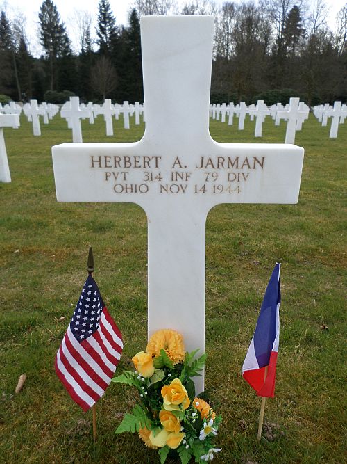 Pvt Herbert A. Jarman was employed at the Copperweld Steel Company before he enlisted in Akron, Ohio on 5 May 1943.He was killed by artillery shell fragments.