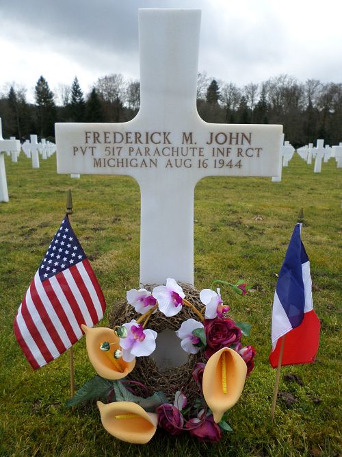 He was first buried at the Temporary American Military Cemetery in Draguignan, France.