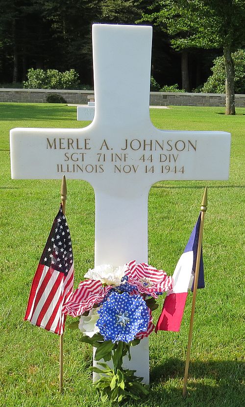 Sgt Merle A. Johnson attended high school for four years and was employed at the Fox River Oil Company before he enlisted at Camp Grant, Illinois on 28 February 1942.Source of information: Peter Schouteten, www.abmc.gov, www.wwiimemorial.com, www.archives.gov - WWII Enlistment Record, www.ancestry.com - Headstone and Interment Record / U.S. WWII Draft Cards Young Men / U.S. Evangelical Lutheran Church Records / 1930 Census, www.findagrave.com