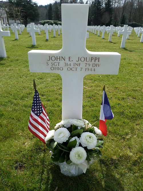 S/Sgt John E. Jouppi attended high school for four years and was employed at the Kaskinen Motor Company before he enlisted in Traverse City, Michigan on 13 June 1942.He was killed by artillery shell fragments in his stomach and thigh.