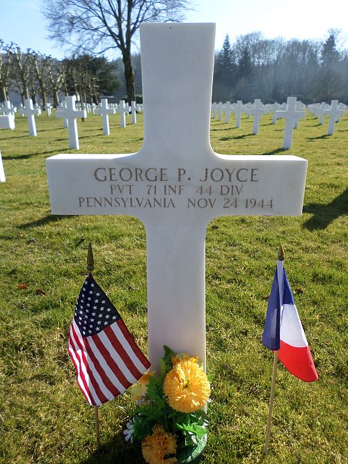 Pvt George P. Joyce was a welder and flame cutter before he enlisted at Fort George G. Meade, Maryland on 21 April 1944.He was killed by artillery shell fragments to his buttock and hip.