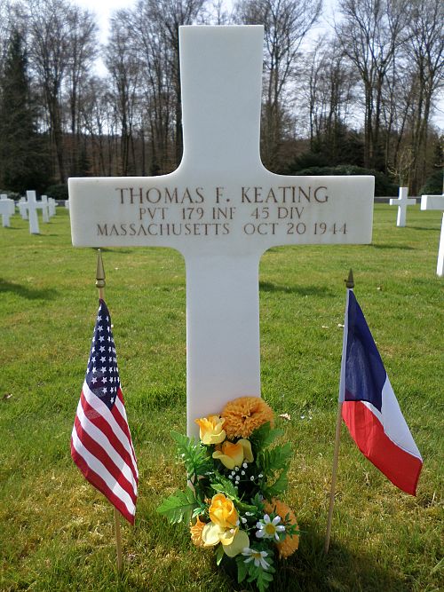 Pvt Thomas F. Keating Sr. attended high school for 4 years before he enlisted in Fort Devens, Massachusetts, on 14 September 1943.Source of information: Peter Schouteten, www.abmc.gov, www.wwiimemorial.com, www.archives.gov – WWII Enlistment Record, www.ancestry.com - Headstone and Interment Record, http://www.45thdivision.org, www.findagrave.com – Don J