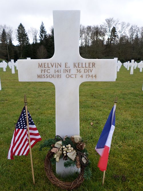 Pfc Melvin E. Keller enlisted at Fort Leavenworth, Kansas on 9 October 1943.Source of information: André Koch, www.abmc.gov, www.wwiimemorial.com, www.archives.gov – WWII Enlistment Record, www.ancestry.com - 1930/1940 Census / Headstone and Interment Records / U.S. WWII Draft Cards Young Men, 141aar-October-November-1944.pdf, https://36th-id.frb.io/