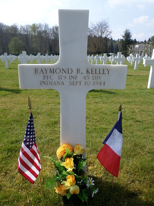 Pfc Raymond R. Kelley attended high school for 2 years before he enlisted in Indianapolis, Indiana on 26 October 1942.He was first buried at the Temporary American Military Cemetery in Saint-Juan, France.