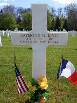 Sgt Raymond D. King was employed by Gold Crown Mining Co. in San Bernardino County, Callifornia.He was awarded the Silver Star Medal postumously for his actions on 8 September 1944 when the 3rd Battalion advanced towards Chatillon-le-Duc against strong enemy resistance.