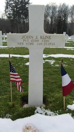 Pvt John J. Kline was raised, after the death of his mother, in the St. Mary’s Boys Orphans Asylum.He attended high school for four years and was employed by the Temple Theater before he joined the Regular Army in Rochester, New York in 1938.