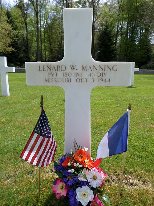Pvt Lenard W. Manning worked on a farm before he enlisted in Jefferson Barracks, Missouri on 19 November 1943.Source of information: Peter Schouteten, www.abmc.gov, www.wwiimemorial.com, www.archives.gov - WWII Enlistment Record, www.ancestry.com - Headstone and Interment Record / Manning Family Tree, http://www.45thdivision.org