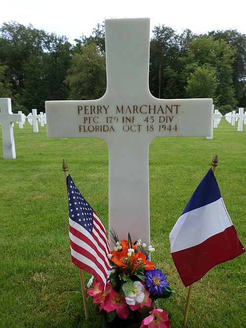 Pfc Perry Marchant enlisted in Camp Blanding, Florida on 14 November 1942.Source of information: Peter Schouteten, www.abmc.gov, www.wwiimemorial.com, www.archives.gov - WWII Enlistment Record, www.ancestry.com - Headstone and Interment Record / Longshaw Lawton Family Tree / U.S. WWII Draft Cards Young Men, http://www.45thdivision.org, www.findagrave.com