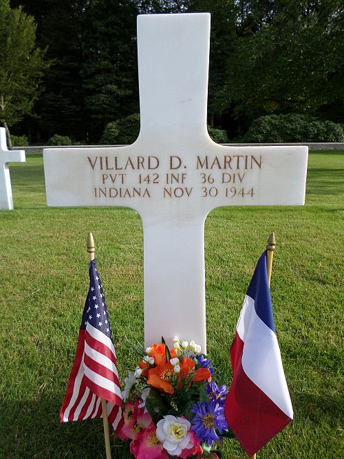 Pvt Villard D. Martin enlisted at Fort Benjamin Harrison, Indiana on 24 April 1944 and was sent overseas in October 1944.He was killed by artillery shell fragments.