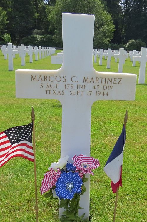 S/Sgt Marcos C. Martinez worked on a farm before he enlisted in Fort Sam Houston, Texas on 7 November 1942.He was first buried at the Temporary American Military Cemetery in Saint-Juan, France.