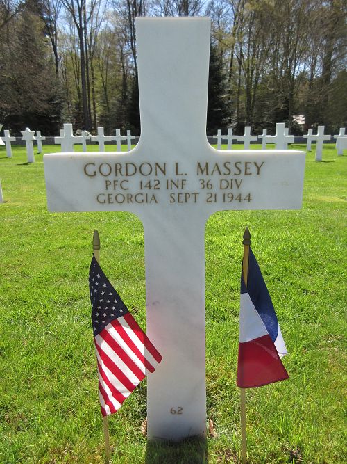 Pfc Gordon L. Massey was a farmer before he enlisted at Fort McPherson, Georgia on 7 November 1942.He was killed by small arms fire in his chest.