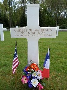 Pfc Christy W. Matheson attended high school for 2 years and worked in a shoe factory.He joined the National Guard in Marlborough, Massachusetts on 16 January 1941.