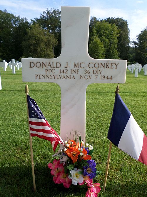 Pfc Donald J. McConkey enlisted in Greensburg, Pennsylvania on 12 June 1943.He was killed by small arms fire to the head.