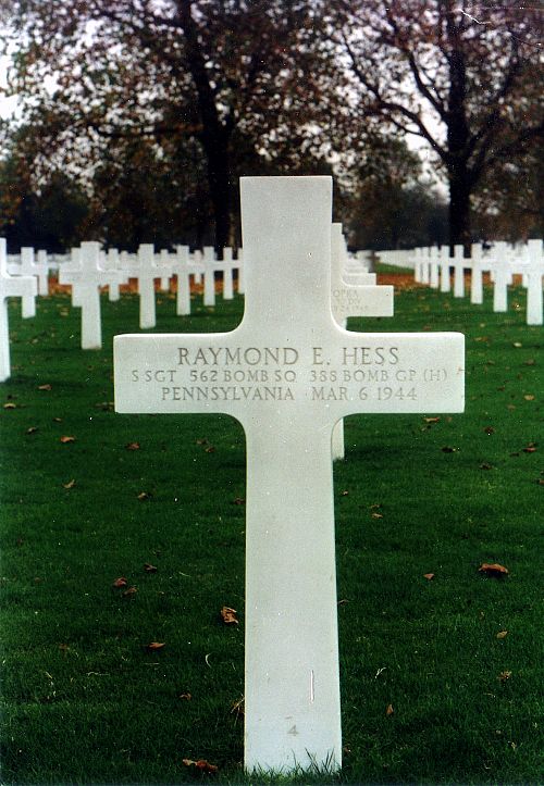 Raymond E. Hess was a service attendant.He joined the Air Corps on 8 October 1942 and trained at Keesler Field in Mississippi. He was promoted to Staff Sergeant while overseas in England.