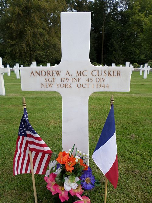 Sgt Andrew A. McCusker attended high school for 2 years before he enlisted in New York City, New York on 27 February 1943.He was first buried at the Temporary American Military Cemetery in Saint-Juan, France.
