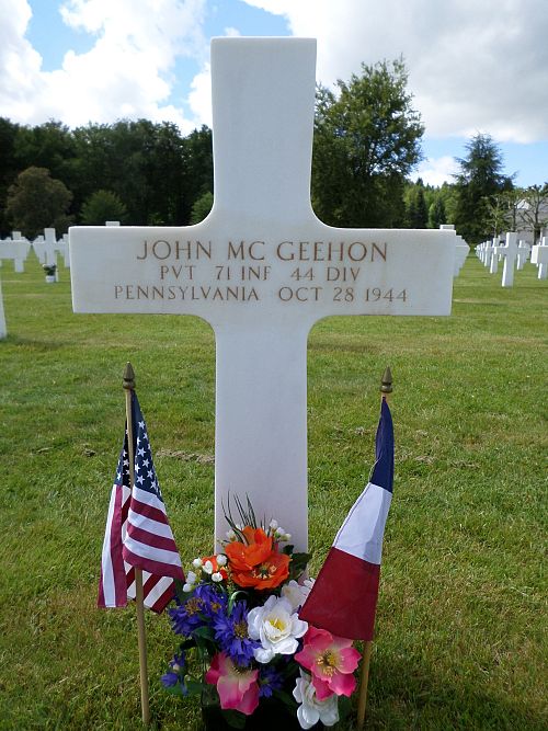 Pvt John McGeehon was an unskilled routeman before he enlisted in Philadelphia, Pennsylvania on 22 February 1943.He was killed by artillery shell fragments to his back.