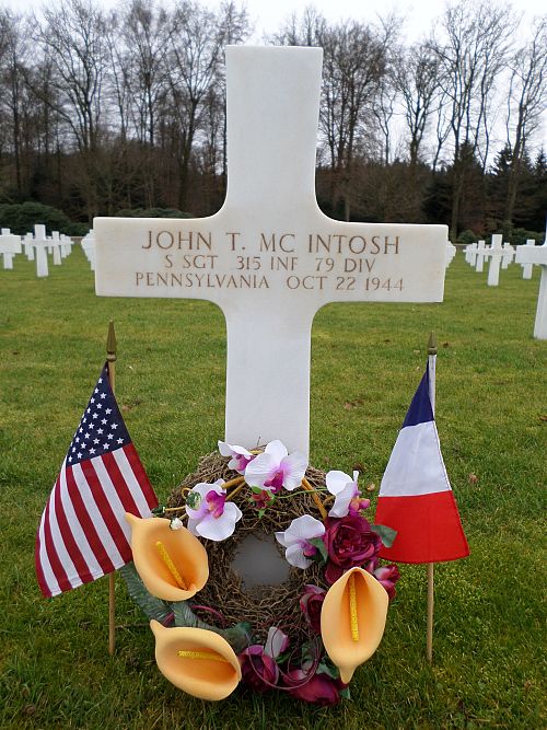 S/Sgt John T. McIntosh attended high school for four years and was employed at the Columbia Radiator Company before he enlisted in Pittsburgh, Pennsylvania on 2 August 1943.He was killed by small arms fire in his back.