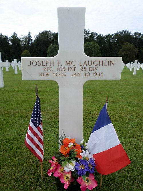 Pfc Joseph F. McLaughlin attended high school for two years and was a shipping and receiving clerk before he enlisted in New York City, New York on 9 November 1943.Source of information: Peter Schouteten, www.abmc.gov, www.wwiimemorial.com, www.archives.gov – WWII Enlistment Record, www.ancestry.com - Headstone and Interment Record, www.findagrave.com