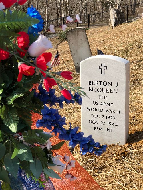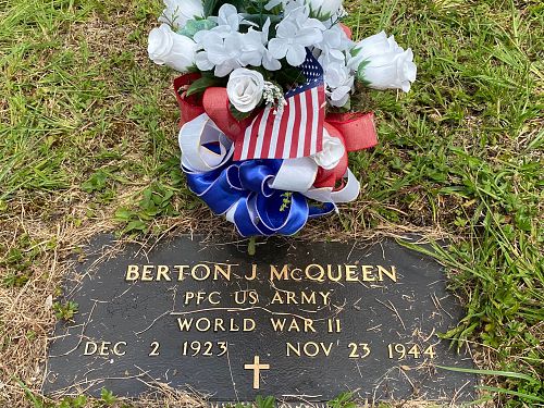 Pfc Berton J. McQueen worked on a farm before he enlisted in Cincinnati, Ohio on 20 April 1943.The Defense POW/MIA Accounting Agency (DPAA) announced today that Pf. Berton J. McQueen was accounted for on 9 July 2021.