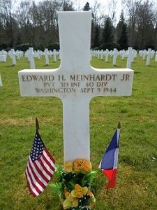 Pvt Edward H. Meinhardt attended high school for two years.He was married to Isabel D. Collins on 3 August 1943, before he enlisted in Seattle, Washington on 30 August 1943.