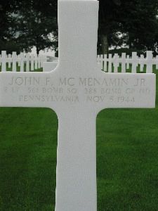 2nd Lt Mc Menamin enlisted on 29 January 1942 at Fort George G. Meade, Maryland.A/C were lost due to this flak. He was landed in the Kirspenich area by parachute this afternoon at about 1330. Upon immediate arrival at the place of the crash it was determined that the dead already occurred. Crash, fracture of cervical vertebra, internal injuries.