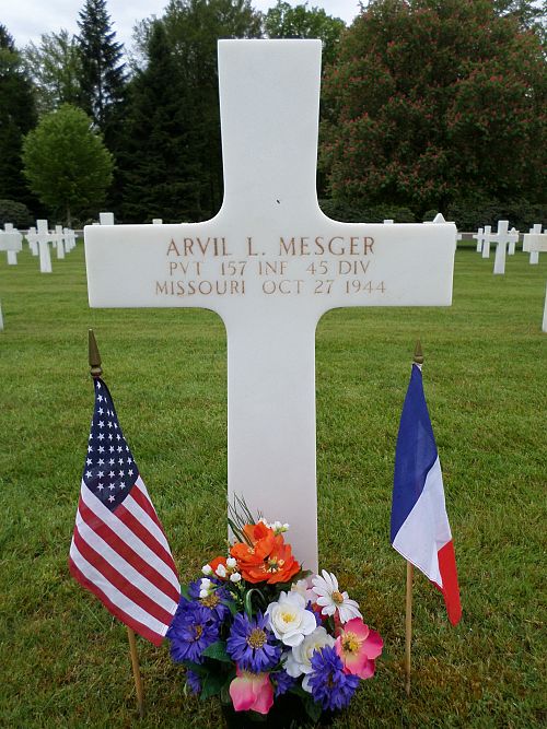 Pvt Arvil L. Mesger enlisted in Jefferson Barracks, Missouri on 13 August 1943.Source of information: Peter Schouteten, www.abmc.gov, www.wwiimemorial.com, www.archives.gov – WWII Enlistment Record, www.ancestry.com - Headstone and Interment Record / Young Family Tree, http://www.45thdivision.org, www.findagrave.com