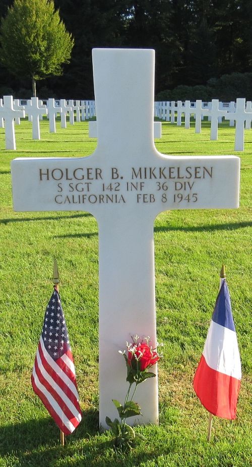 S/Sgt Holger B. Mikkelsen was employed at the Danish Creamery Asso. before he enlisted in Sacramento, California on 4 September 1942.He was killed by artillery shell fragments in his chest.