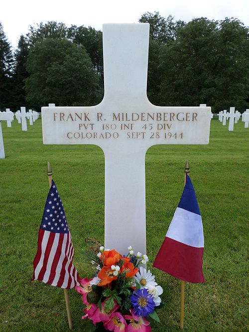Pvt Frank R. Mildenberger attended high school for 4 years before he enlisted in Camp Dodge Herrold, Iowa on 19 March 1943.He was taken prisoner of war and died of his injuries in Germany. Whether he died in a POW camp or in a hospital is not known.