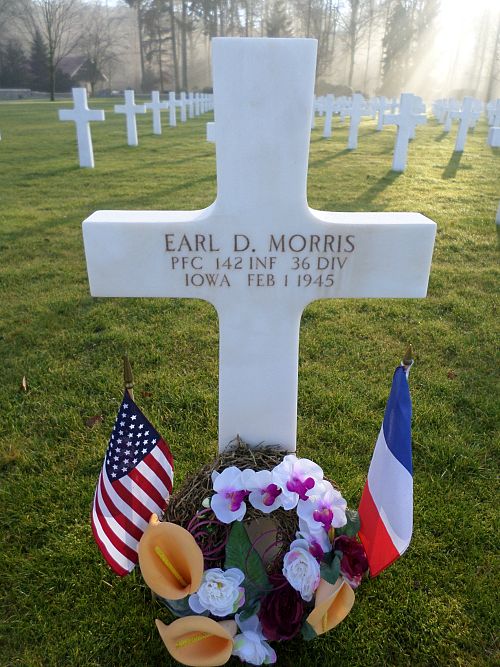 Pfc Earl D. Morriss was a mechanic he joined the Regular Army in Omaha, Nebraska on 30 April 1941.He was killed by small arms fire in his chest.