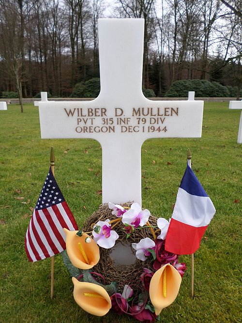 Pvt Wilber D. Mullen worked on the family farm before he enlisted at Fort Lewis, Washington on 15 April 1944.Source of information: Peter Schouteten, www.abmc.gov, www.wwiimemorial.com, www.archives.gov - WWII Enlistment Record, www.ancestry.com - Headstone and Interment Record / U.S. WWII Draft Cards Young Men / Miller & Lounsbury & More, Combat History 79th Infantry Division