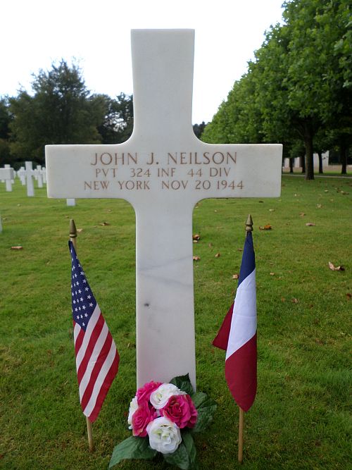 Pvt John J. Neilson attended high school for four years and was a bookkeeper and cashier before he enlisted at Fort Dix, New Jersey on 8 April 1944.He was killed by small arms fire in his back.