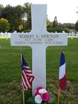 Sgt Robert E. Newton worked on the family farm before he enlisted at Camp Croft, South Carolina on 3 November 1942.He was wounded in November 1943 by artillery shell fragments in his leg. He was discharged from hospital in June 1944.