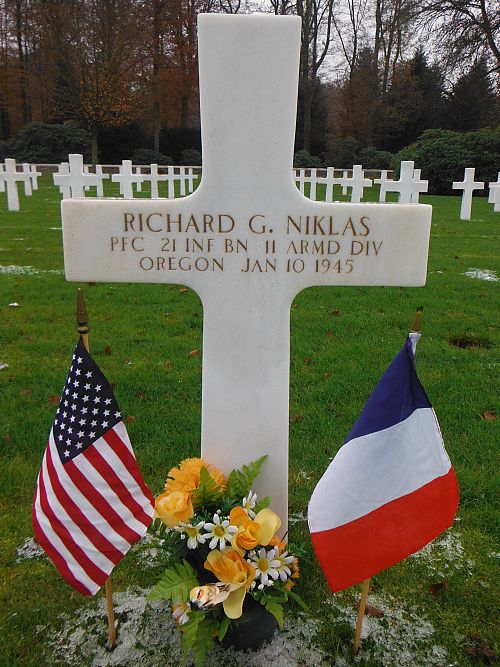 Pfc Richard G. Niklas attended Oregon State College for two years and worked for his father in the Niklas & Son Florists shop.He enlisted in Corvallis, Oregon on 4 December 1942.