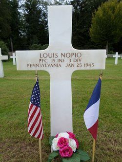 Pfc Louis Nopio was a furnace man employed by the Superior Bronze Co. before he enlisted in Erie, Pennsylvania on 19 December 1942. He was sent overseas in December 1944.He was killed by small arms fire in the abdomen.