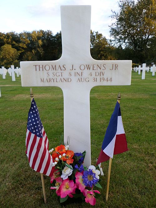 S/Sgt Thomas J. Owens Jr. was a fireman before he enlisted in Baltimore, Maryland on 24 June 1943.He was first buried at the Temporary American Military Cemetery in Solers, France.