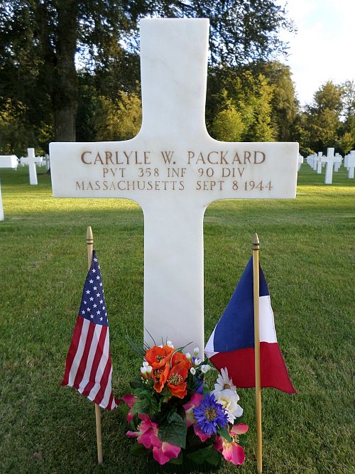Pvt Carlyle W. Packard attended high school for 3 years and was a mechanic and repairman before he enlisted in Springfield, Massachusetts on 7 October 1943.He was wounded in France on July 1944.