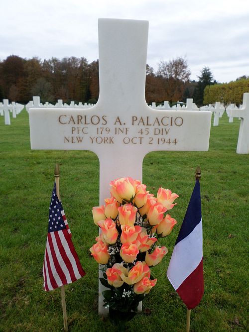 Pfc Carlos A. Palacio attended 2 years of college and was a cook at Kind's Hamburger Incorporated.He enlisted in Fort Jay Governors Island, New York on 11 August 1942.
