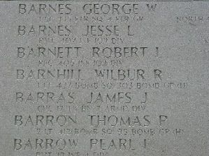 2nd Lt Thomas P. Barron graduated from Maur Hill High School and attended William Jewell College. He was employed by Peck's Department Store.On his 11th mission, while returning from Brunswick, Germany, the plane was seen to be hit by enemy aircraft fire, and the #2 engine caught on fire at 1543 hours over the Zuider Zee. Five parachutes were seen to leave the airplane before the aircraft was lost from view as it ditched into the North Sea, three kilometers off the coast of the Netherlands.