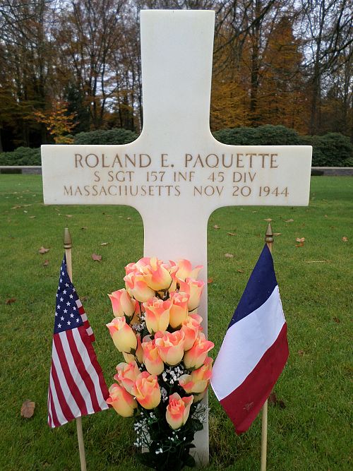S/Sgt Roland E. Paquette attended high school for 2 years before he enlisted in Worcester, Massachusetts on 3 March 1941.Source of information: Peter Schouteten, www.abmc.gov, www.wwiimemorial.com, www.archives.gov – WWII Enlistment Record, www.ancestry.com - Headstone and Interment Record, http://www.45thdivision.org, www.newspapers.com – Fitchburg Sentinel Massachusetts 7 November 1944, WWII Draft Card