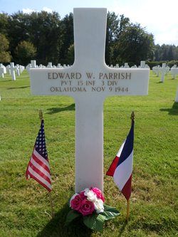 Pvt Edward W. Parrish worked on the family farm when he enlisted on 26 December 1942. He was sent overseas on 15 October 1944.He was killed by artillery shell fragments in his abdomen.