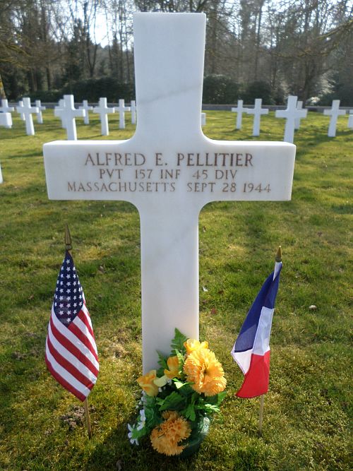 Pvt Alfred E. Pellitier joined the National Guard in Boston, Massachusetts on 16 January 1941.He was first buried at the Temporary American Military Cemetery in Saint-Juan, France.