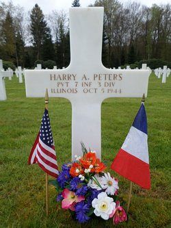 Pvt Harry A. Peters attended high school for one year and was a copper chef employed by the Marcotte Crotty Co.He enlisted on 24 January 1944 and was sent overseas in July 1944.