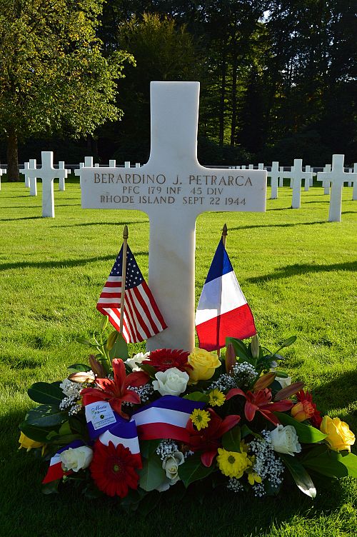 Pfc Berardino J. Petrarca enlisted in Providence, Rhode island on 8 April 1943.He was first buried at the Temporary American Military Cemetery in Saint-Juan, France.