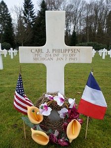 Pfc Carl J. Philippsen was employed at Briggs before he enlisted in 1942. He was sent overseas in November 1944.Source of information: Peter Schouteten, Terry Hirsch, www.abmc.gov, www.wwiimemorial.com, www.ancestry.com - Headstone and Interment Record / Susan Semak Family Tree / Missouri Marriage Records, http://www.trailblazersww2.org, WWII Draft Card