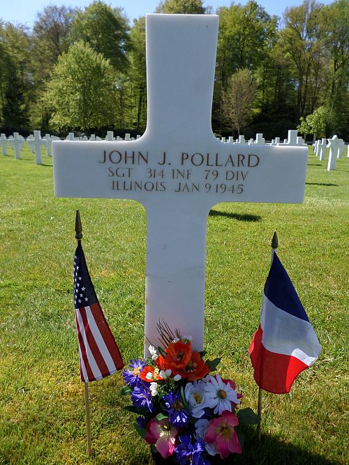 Sgt John J. Pollard attended college for one year before he joined the U.S. Army Reserve on 10 November 1942.Source of information: Peter Schouteten, www.abmc.gov, www.wwiimemorial.com, www.archives.gov - WWII Enlistment Record, www.ancestry.com - Headstone and Interment Record / U.S. WWII Draft Cards Young Men / DePatie Family Tree, Combat History 314th Infantry Regiment