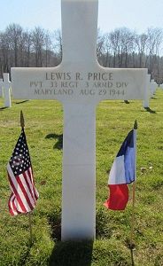 Pvt Lewis R. Price worked on a farm before he enlisted in Fort George G. Meade, Maryland on 15 January 1942.He was first buried at the Temporary American Military Cemetery of Champigneul, France.