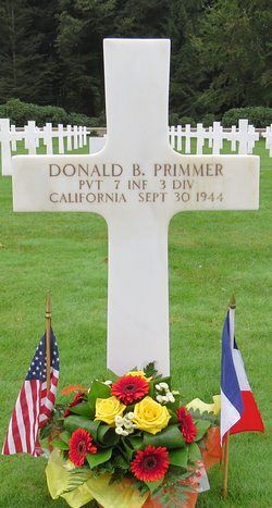 Pvt Donald B. Primmer was a mechanic before he joined the Regular Army at Fort McDowell, California on 8 August 1940.He was awarded the Silver Star Medal posthumously for his actions as a member of C Battery of the 39th Field Artillery Battalion on 10 July 1943 in Sicily.