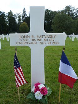 S/Sgt John R. Ratvasky worked in a foundry before he enlisted in Erie, Pennsylvania on 8 July 1942.In September 1944 he was wounded in the back by artillery shell fragments.